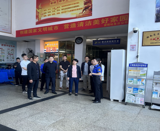 10月16日,益陽市資陽區(qū)人民政府區(qū)長黃瑛、資陽區(qū)交通運輸局局長段敏堯、資陽區(qū)道路運輸服務中心主任楊與等一行到資陽汽車站督查國家衛(wèi)生城市復審工作。公司經理高佑青等陪同。